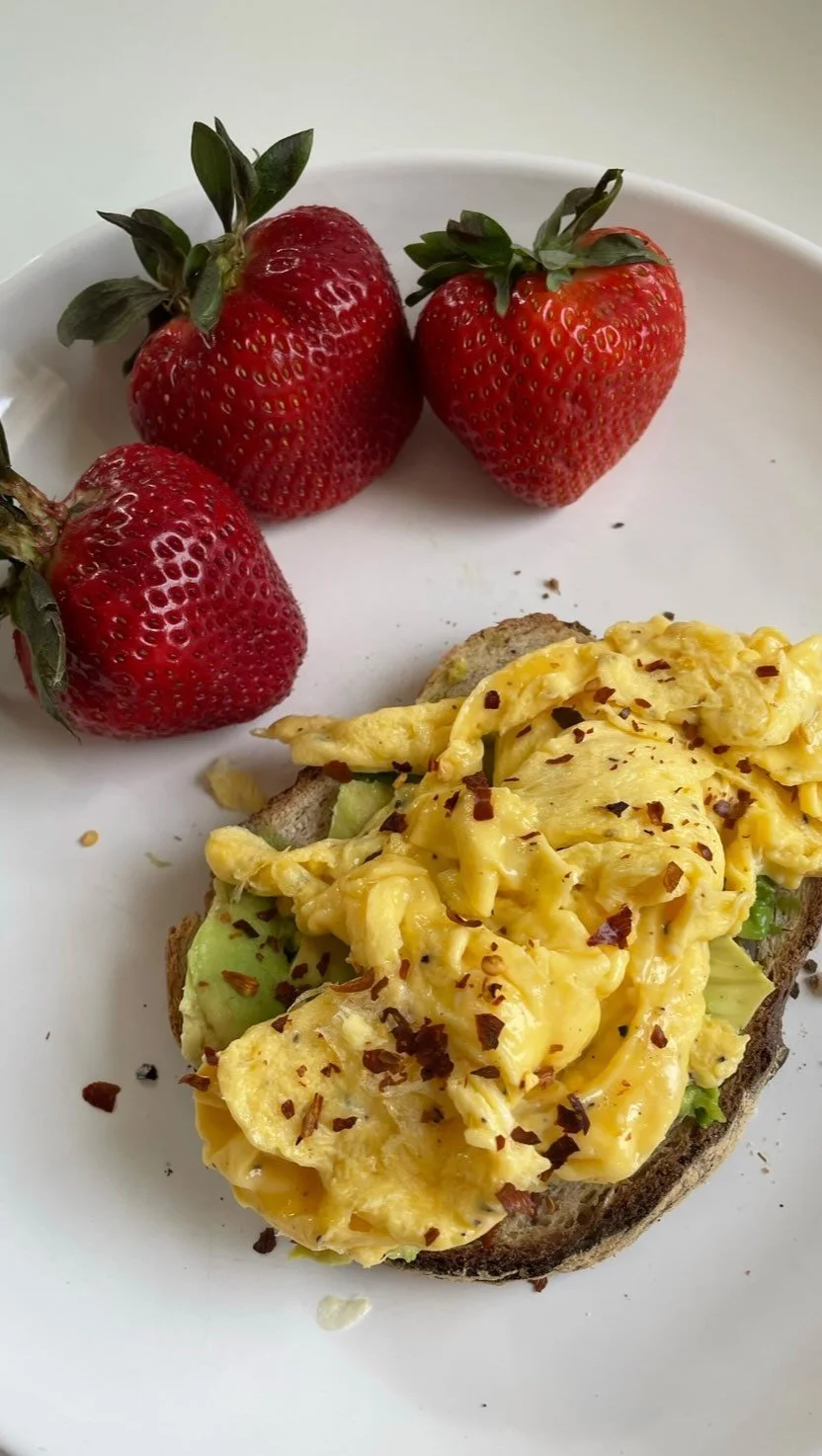 My 10-min emergency meal is avocado egg toast with some tomatoes and cottage cheese because even dietitians have those βuh-oh itβs 7 p.m.β nights.