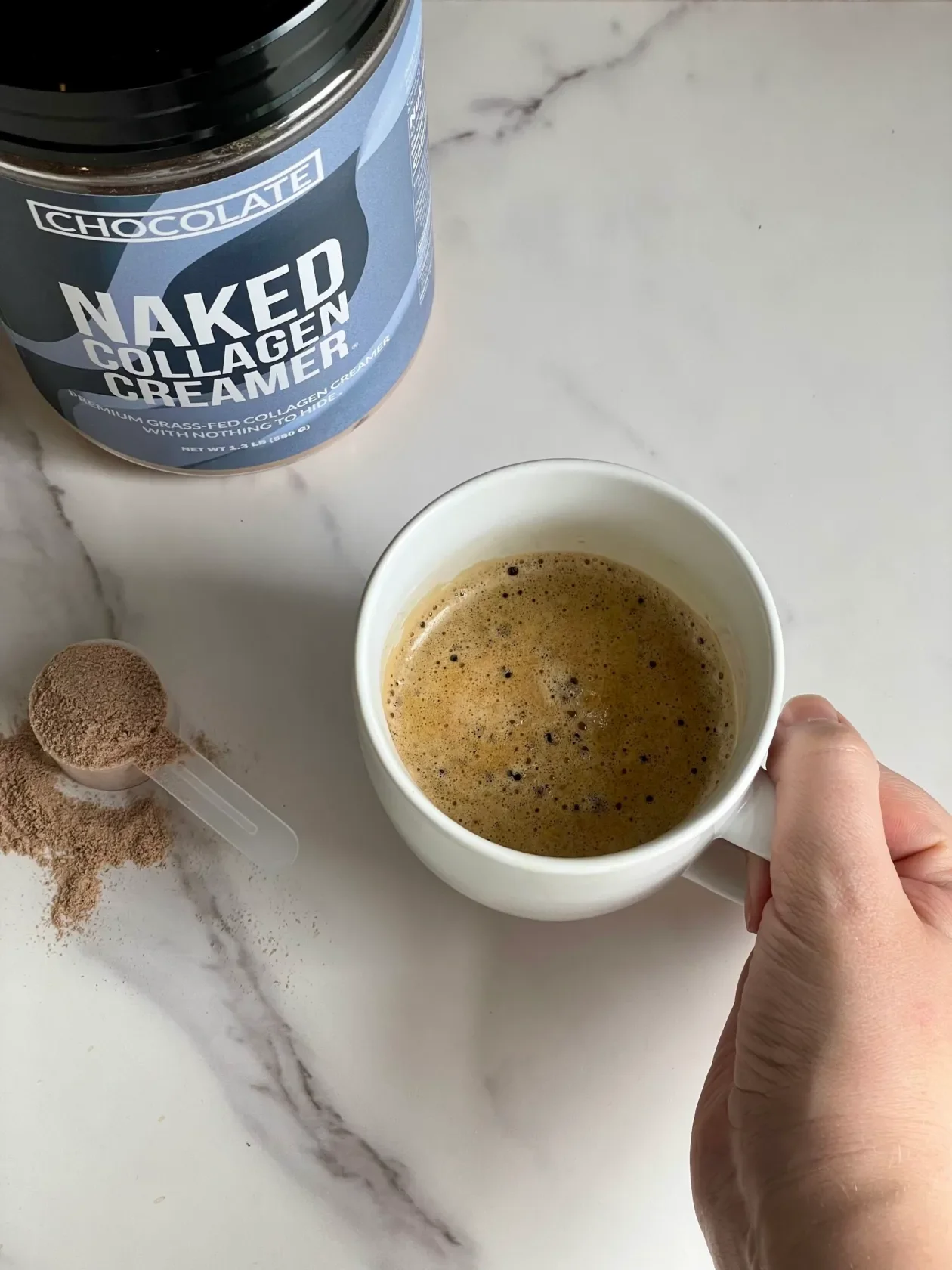 I can’t imagine my mornings without coffee, but I’ve taken it to the next level with Naked Nutrition’s Chocolate Collagen Creamer. This collagen coffee creamer adds 9 grams of protein per serving, helping me reach my daily protein goal while supporting my skin’s hydration and elasticity.